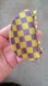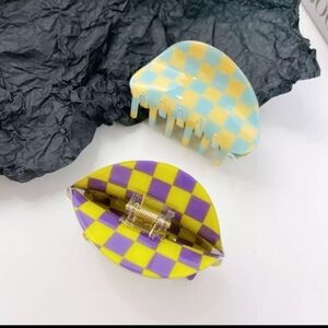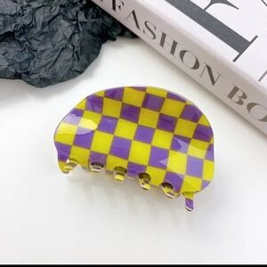 NEW Trendy checkered semicircle acrylic hair claw in purple and yellow.