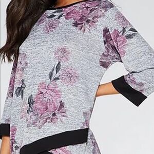 NWT Purple floral asymmetrical three-quarter sleeve top . Vintage casual. Cotton