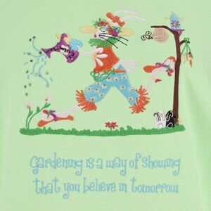 - embroidery, whimsical, garden, gardening, present, gift idea, inspirational quote, mint green, lime green, granny sweater