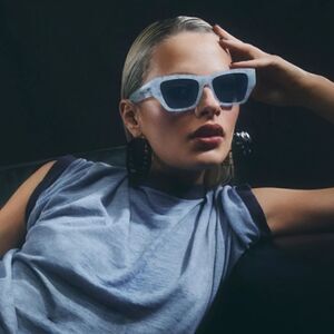 Sorry, not sorry, in NO APOLOGIES. This Limited Edition stylish, angled square features grommet detailing for an edged-up fashion moment. Arctic tortoise frame. Navy to blue gradient lens. *Brand new with hard case. Authentic brand.