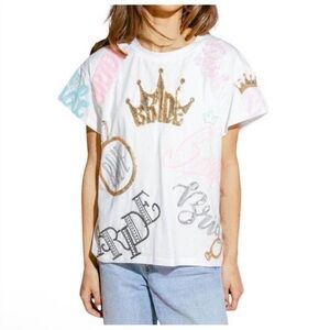NWT QUEEN OF SPARKLES bride all over tee top in white - size M
