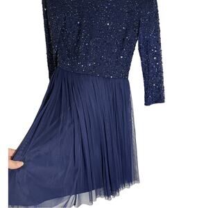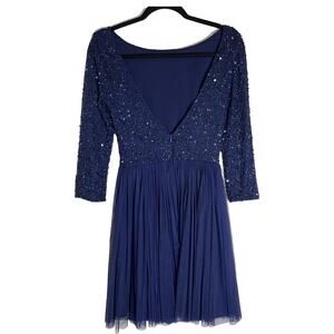 NWT QUIZ Womens Navy Zippered Embellished Mesh 3/4 Sleeve Boat Neck Party Dress.