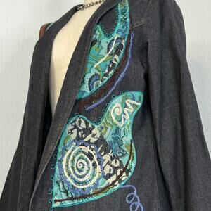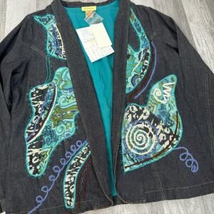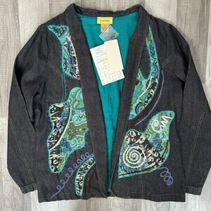 NWT QVC Open Front Jean Jacket Beaded Embellished Boho Fairycore Size Medium