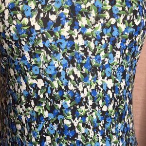 NWT Qeefan Women Small Sleeveless Floral A-Line Dress Blue Green Small Loose Vacation Beachy Stretchy Polyester Spandex Blend