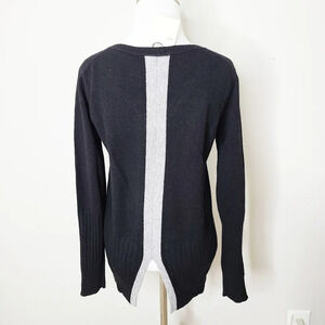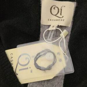 NWT Qi Black Cashmere Sweater with Gray Stripe Back Detail S