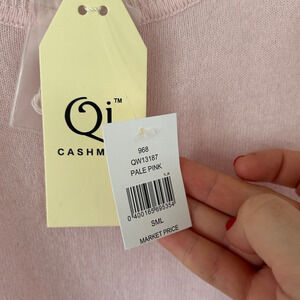 NWT Qi Cashmere Pale Pink Ruffle Crew-Neck Sweater. Size Small.