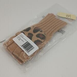 NWT Qi Cashmere Pop Top Gloves Camel Brown Black Leopard Print-