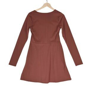 Qinsen Clay Brown Long Sleeve Skater Dress XL Sweetheart Neckline Fit & Flare