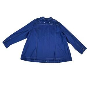 NWT Quacker Factory Stars and Sparkle Woven Button Front Jacket Navy 3X