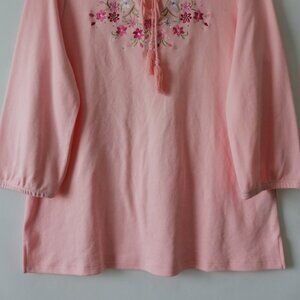 NWT Qucckers Factory Womens Salmon Pink Embellished Embroidered Tassel Top Sz L