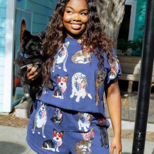 This top is slightly-cropped with a raw hem and complete with a sequin American-themed dog design! Be sure to style it with the matching short! Woof woof, America!🇺🇸🐾