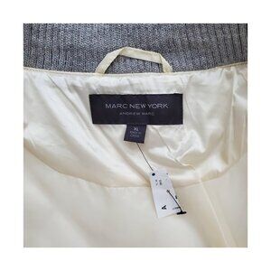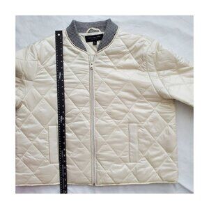 Marc New York Cream Quilted Lightweight Satin Bomber Zip Jacket with Contrasting Gray Ribbed Collar / Sleeves and Pockets - Size XL