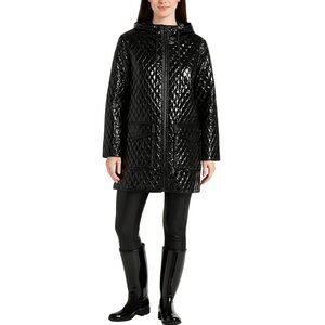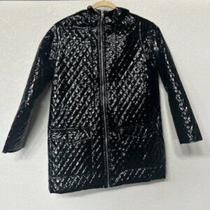 NWT Quilted Patent Leather Rain Coat Jacket With Pockets
