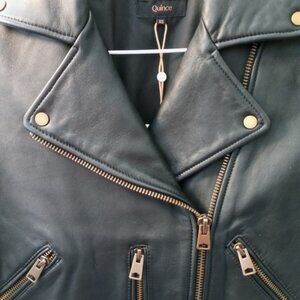 NWT Quince 100% Leather Motorcycle Jacket Black/Brass $200 XS Perfect condition