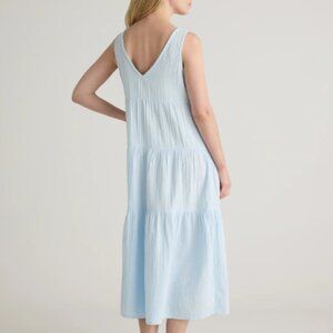 NWT Quince 100% Organic Cotton Gauze Tiered Maxi Dress Size XS Nantucket Blue