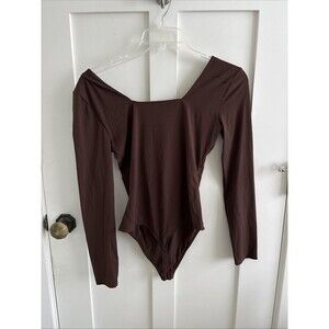 NWT Quince Brown Square Neck Long Sleeve Skim Second Skin Bodysuit Sz large
