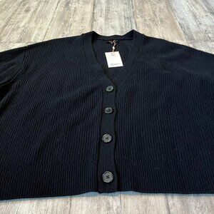 NWT! Quince Mongolian Cashmere Fisherman Boxy Cropped Cardigan Sweater, Black XL