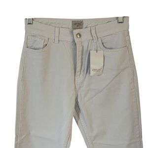 Elegant light gray jeans with a sleek slim fit. Perfect for versatile styling.