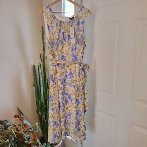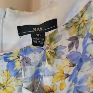 NWT R & K Blue Watercolor Floral Sleeveless Spring/Summer Dress, Size 16