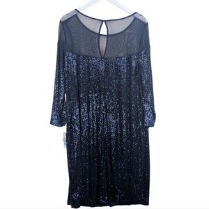 NWT R & M Richards Sequin Long Sleeve Knee-Length Evening Dress Navy Blue 20w