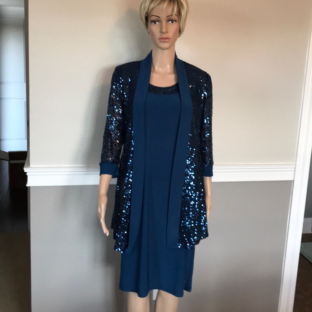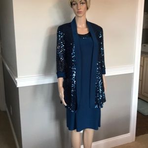 NWT! Beautiful Peacock sequined dress and jacket set by R&M Richards Size 8
