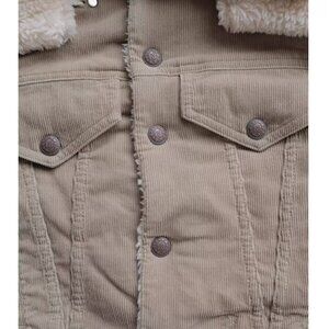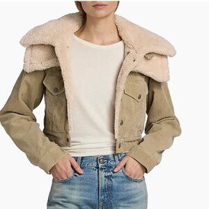 NWT R13 Crop Trucker Jacket Stone Pinwale Cord Corduroy & Faux-Sherpa