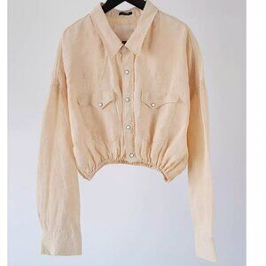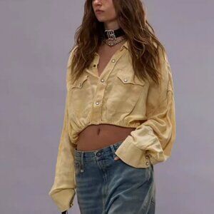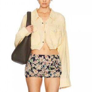 NWT R13 Crossover Utility Bubble Shirt Maize Linen Chambray Light Yellow