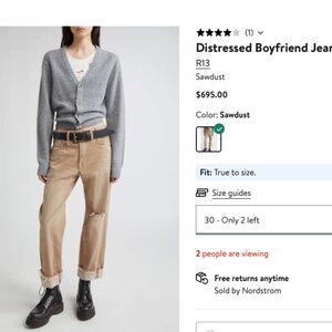 NWT R13 Distressed Boyfriend Jeans Sawdust 30
