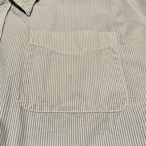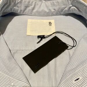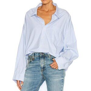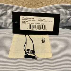 NWT R13 Drop Neck Oxford Shirt in Blue & White Pinstripe. Size XS. Oversized fit. Great spring/summer layer. 100% cotton. Breast pocket. Dolman sleeves. Shirttail hem. Purchased final sale and never worn. This fits generously and would work for a range of sizes and heights. It's a fine/thin pinstripe, see detail photos of pocket for best representation of the pattern.