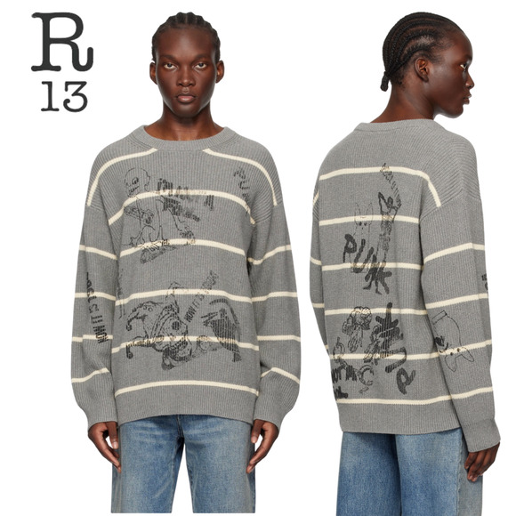 NWT R13 Gray Striped Boyfriend Sweater - Medium (Unisex)