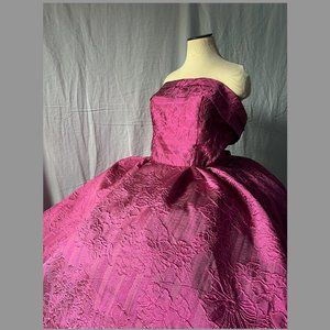 7013 Ballgown strapless fuchsia dress with floral detailed fabric