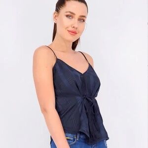 NWT RACHEL ROY Jasmin True Navy Plaid Tie Camisole Top Size XS