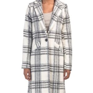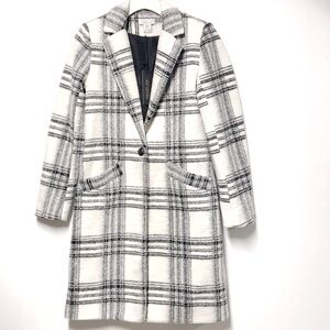 Classic and very soft plaid coat by Rachel Zoe. Checkered pattern with two front pockets and one button closure at front. Fits size: S / XS