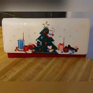 Charming wallet with a festive Christmas tree design. Features gift and star accents. Perfect for holiday cheer.