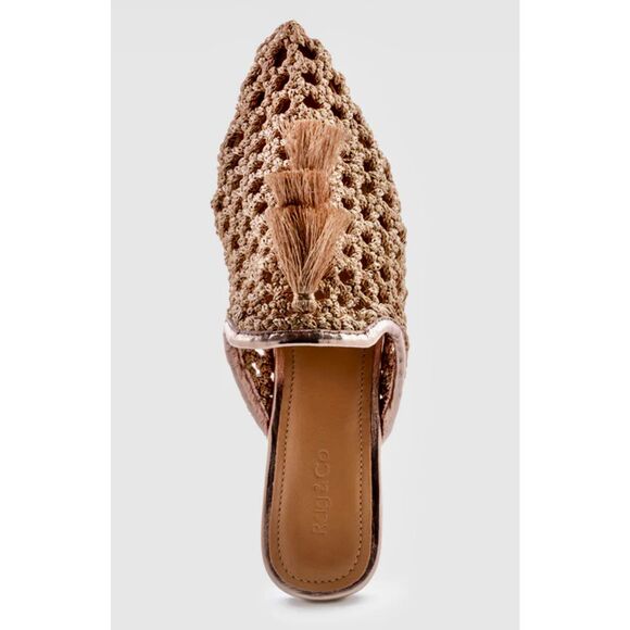 NWT RAG & CO MELANIE Rose Gold Bronze Tassels Embellished Woven Flat Mules Size