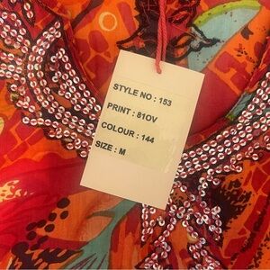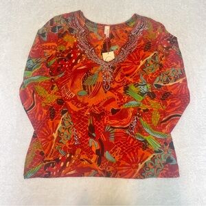 NWT RAGA Anthropologie Colorful Beaded Tropical Print Tunic Shirt Blouse Resort Vacation Cruise