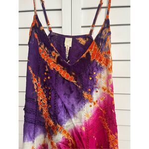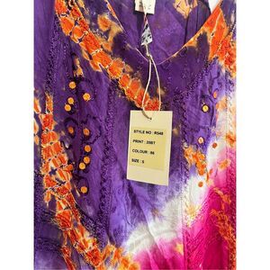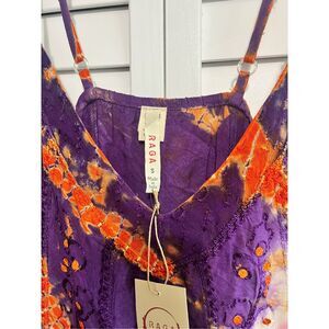 NWT RAGA Midi Dress SMALL Tie Dye Hippie Embroidered Jacquard Eyelet Ruffle Art