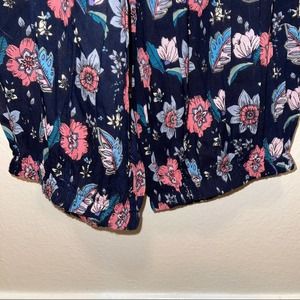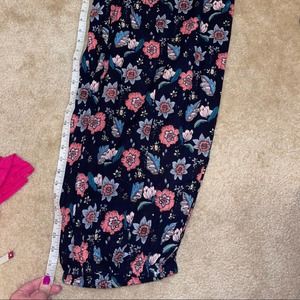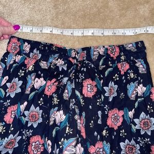 NWT RAGA Navy & Pink Floral Boho Palazzo Elastic Waist Pant Small