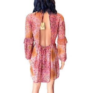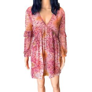 NWT RAGA Anthropologie Colorful Pink Ruffle Mini Dress Size Large