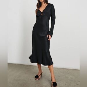 NWT RAILS AMANDA dress in black satin size small Long Sleeve midi
