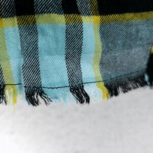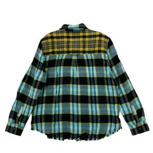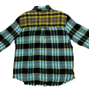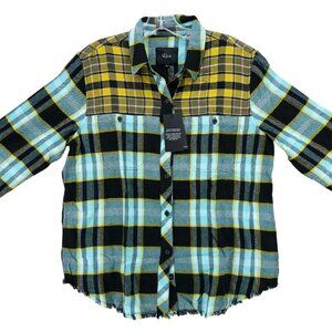 NWT RAILS Brando Shirt Sky Mixed Plaid Frayed Fringe Hem Rayon Cotton MEDIUM
