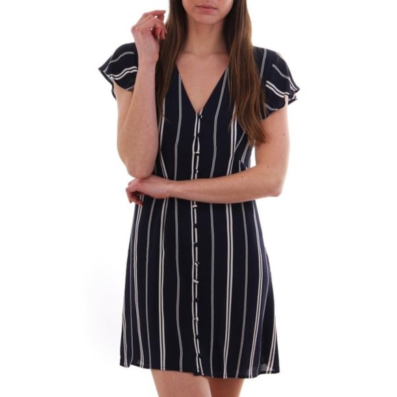 Crisp stripes amplify the contemporary charm of this sleek short-sleeve minidress.