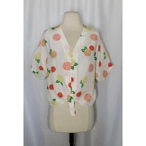 NWT!! RAILS Thea Citrus Print Silk Tie Front Top Blouse Button Down X-Small