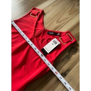 NWT RALPH LAUREN Womens Red Sleeveless V Neck Midi RUFFLED Sheath Dress Size PM