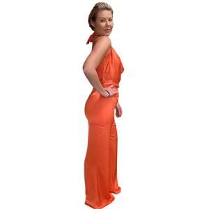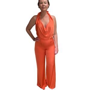 BRAND NEW WITH TAGS. FEATURES DRAPEY NECKLINE WITH HALTER TIE AT NECK. SLIGHT OPEN BACK. BN NEVER WORN CONDITION. PIX 4-7 ARE OF THE ACTUAL DRESS AND IMO A MORE ACCURATE REFLECTION OF THE ORANGE COLOR. IT IS MUCH MORE OF A TANGERINE ORANGE THAN THE STOCK PHOTOS (1-3) REFLECT.