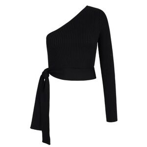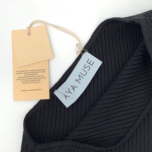 NWT RARE AYA MUSE Zircon Asymmetric Ribbed Knit Top in Black Size Extra Small