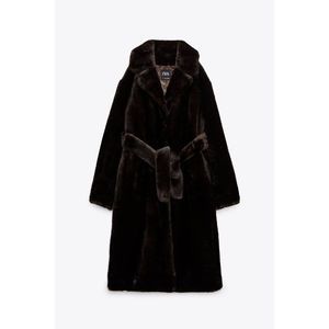 NWT RARE LONG FAUX FUR COAT ZARA CHOCOLATE BROWN