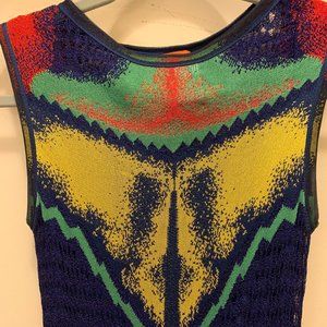 Brand new with tags, never worn!!! This dress is absolutely stunning. It fits beautifully and is fully lined (see photos for blue slip lining). The details and coloring of this dress are so unique and intricately made. I haven't been able to find this dress listed anywhere else so it's certainly a rare find and really the most gorgeous Missoni knit I've ever seen--I love the colors and curve-hugging fit. I'm so so sad I never had anywhere to wear this and hope someone will put it to good use! There are a few tiny snags-see last photo--that are not at all noticeable and very typical of this type of fabric. This is a size 42 but fits a size 0,2. Let me know if you'd like measurements!