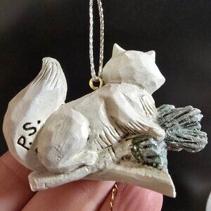 This vintage rare white fox ornament designed by Pam Schifferl showcases meticulous craftsmanship. It features a dangling snowflake accent and a sturdy hanging cord.
