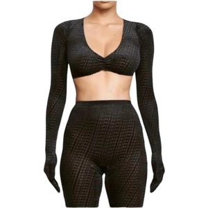 Crop top with gloves and bottoms. Never been worn. Perfect for NYE or night out